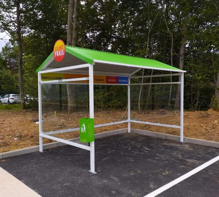 Pour s'aligner sur votre charte graphique, l'abri GF 2 est entièrement personnalisable. Choisissez la couleur de la structure acier parmi toute la gamme RAL et optez pour une finition lasure (chêne clair, acajou...) pour les modèles en bois.