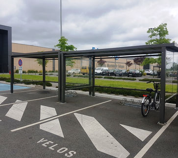 La fixation de l'abri est assurée par un ancrage robuste sur platines en acier, scellées au sol par résine pour une stabilité à toute épreuve. De plus, de nombreux équipements complémentaires peuvent être ajoutés pour améliorer la fonctionnalité de votre espace de stationnement :